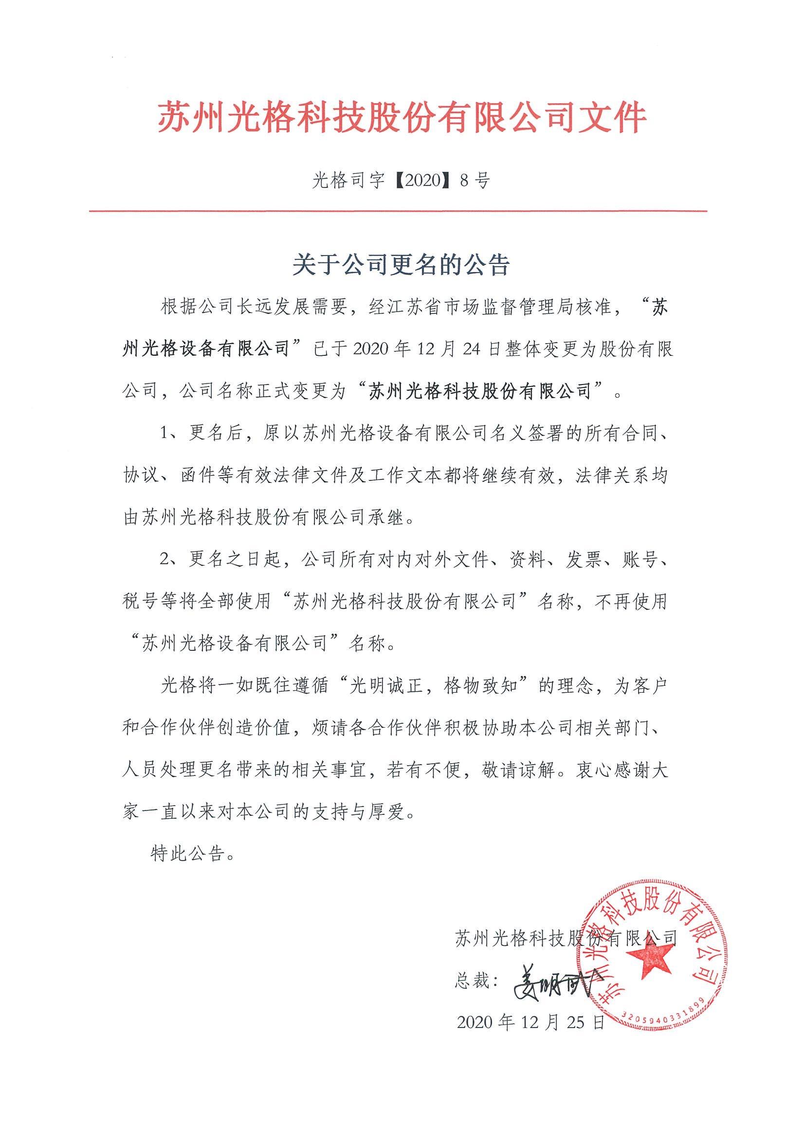 蘇州光格科技股份有限公司